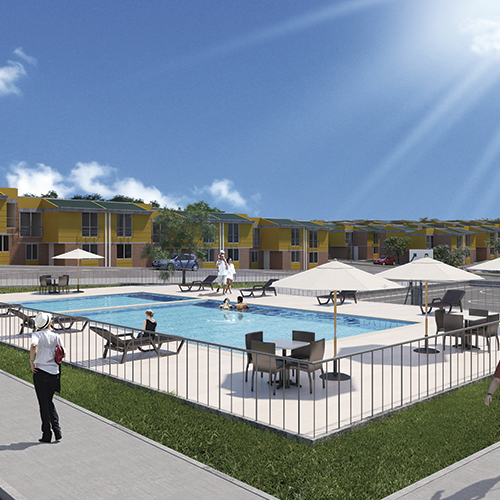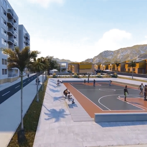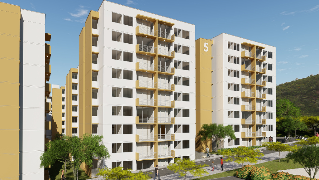 Cocina americana, zona de ropas, balcón, un (1) baño, habitación principal y una (1) habitación auxiliar, torres de 9 y 8 pisos con ascensor.